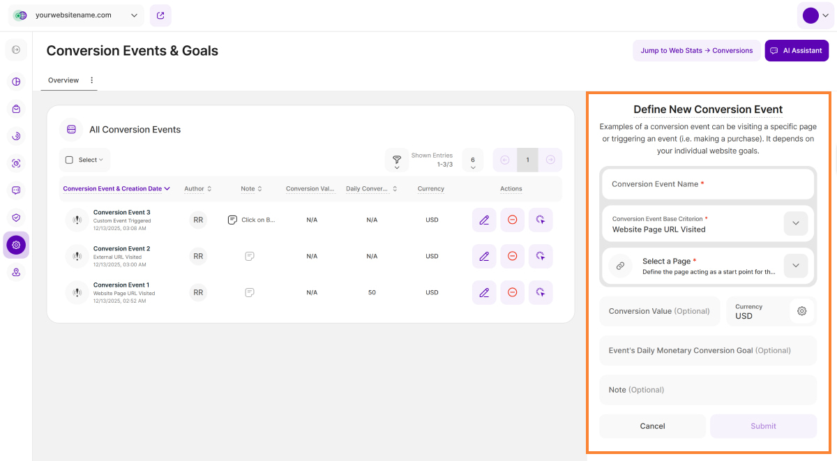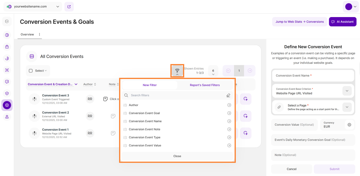 We've added the new Conversions submodule to Web Statistics. This powerful tool provides detailed information about your custom conversion events, helping you understand how users interact with your website.