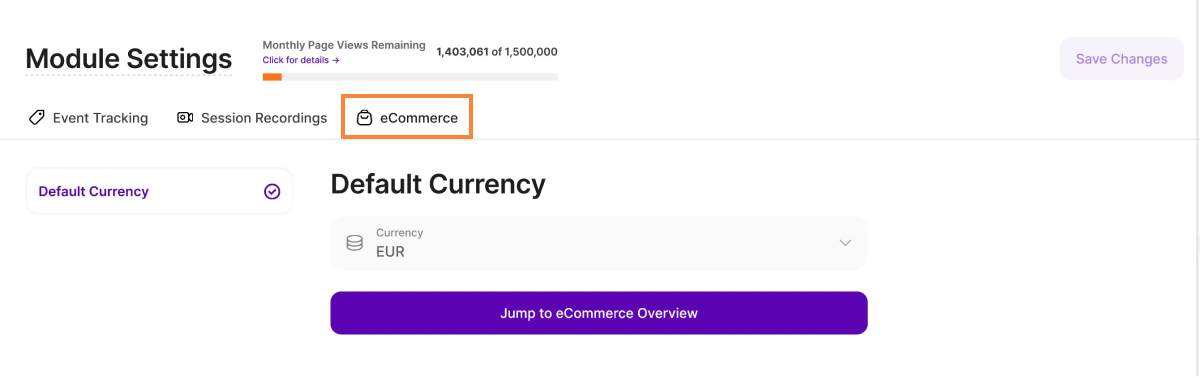 This section of the Module Settings allows you to set the default currency for all your Conversion events. The current default currency is USD.