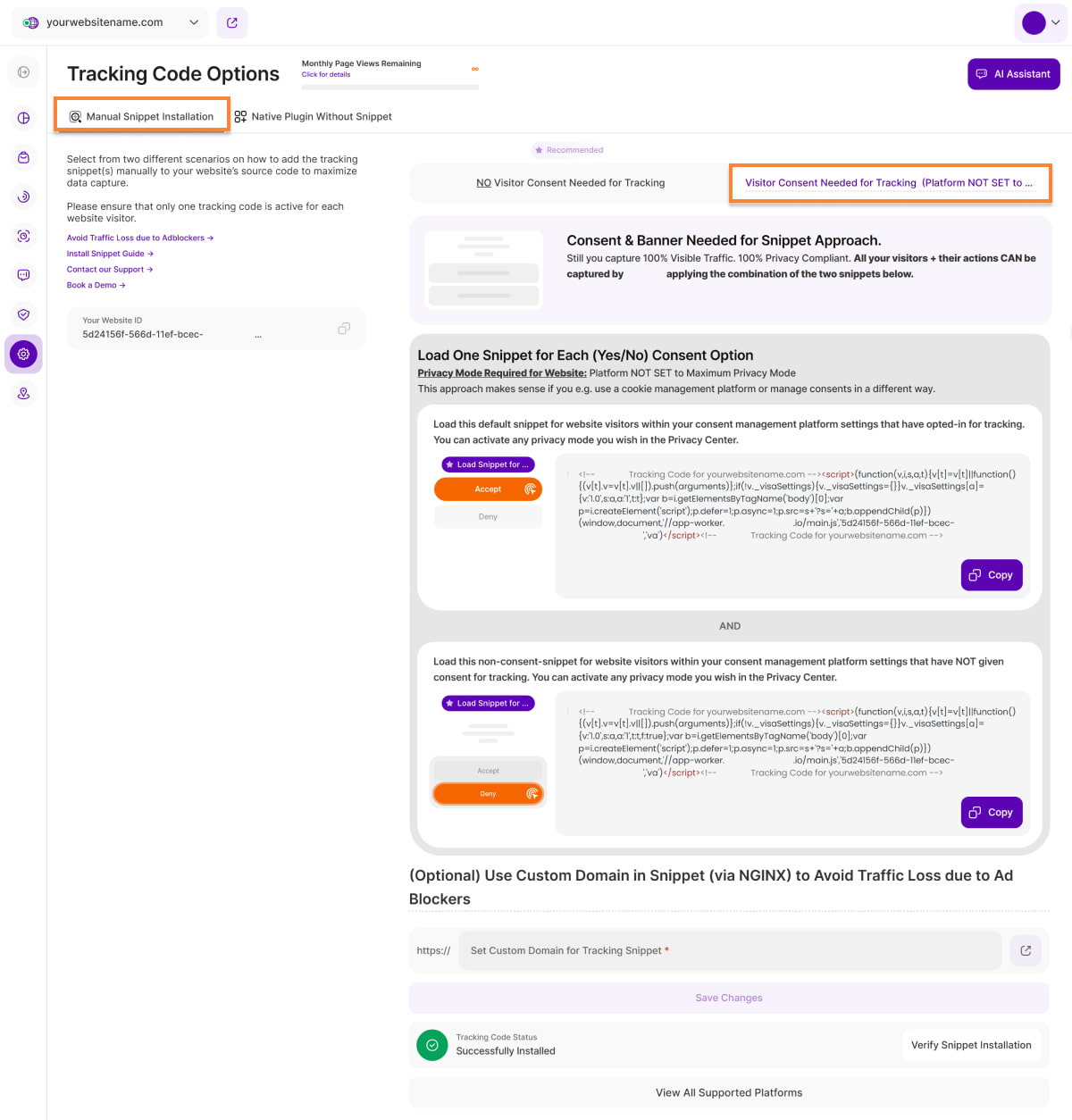 Domain Whitelisting lets you include your website's tracking code on related domains and subdomains, ensuring comprehensive visitor data.