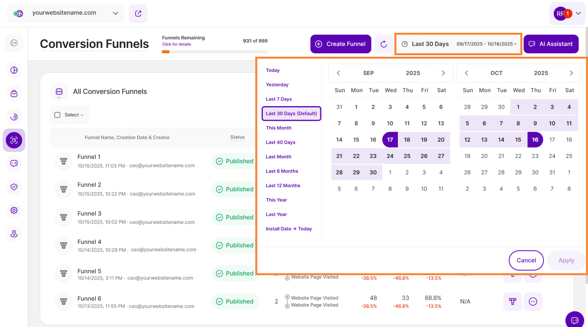 - Funnel Name: The assigned name for your funnel. This can be edited.