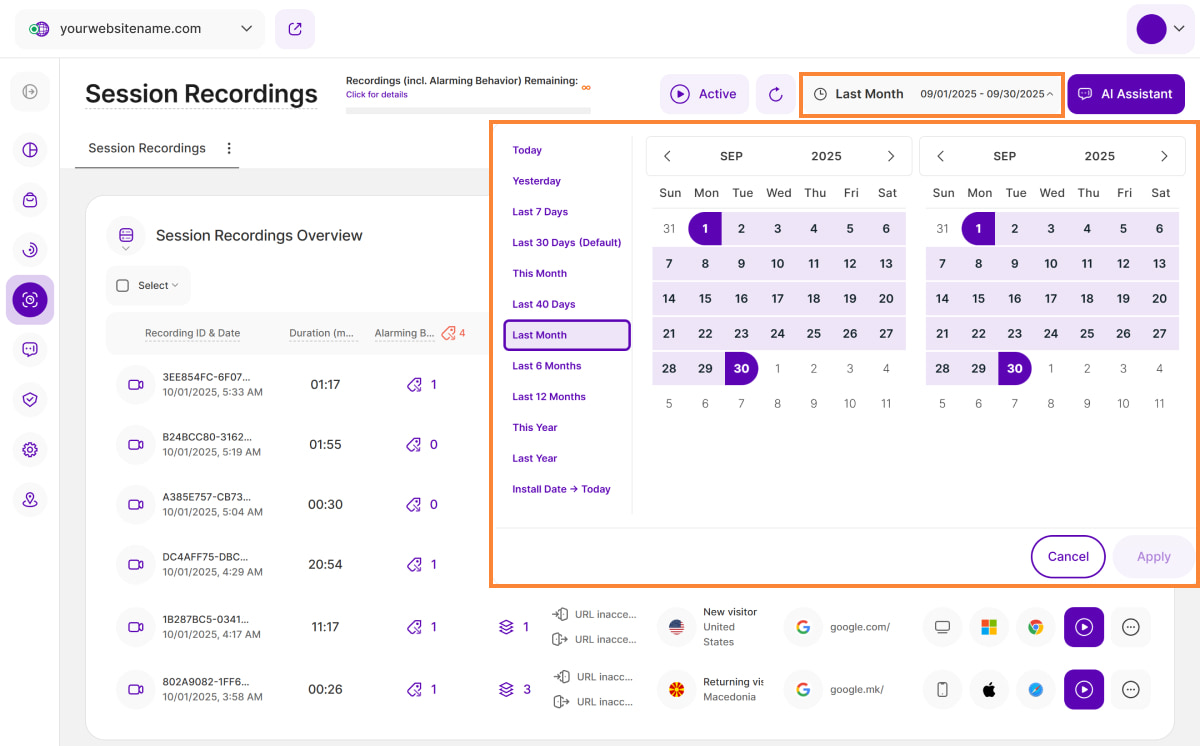 The Session Recordings feature is now active and will begin collecting new visitor data according to your specified settings.