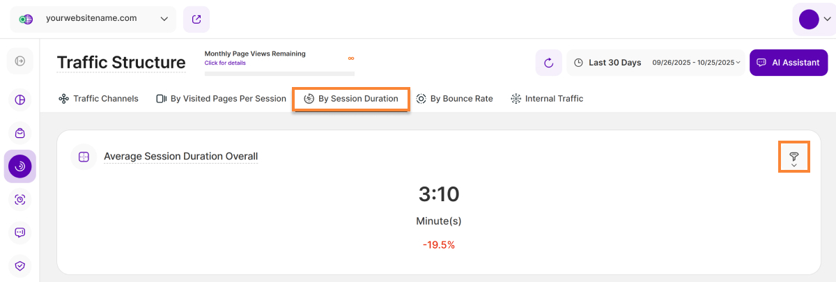 This section reveals the average pages visitors explore per session, helping you identify traffic channels that keep them hooked. We calculate this metric based on all visitor sessions within your chosen timeframe, ensuring accuracy.