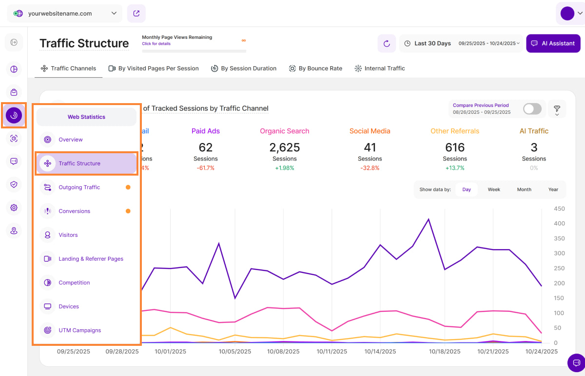 Within the traffic structure submodule, you'll find comprehensive details about how your incoming website traffic is organized.