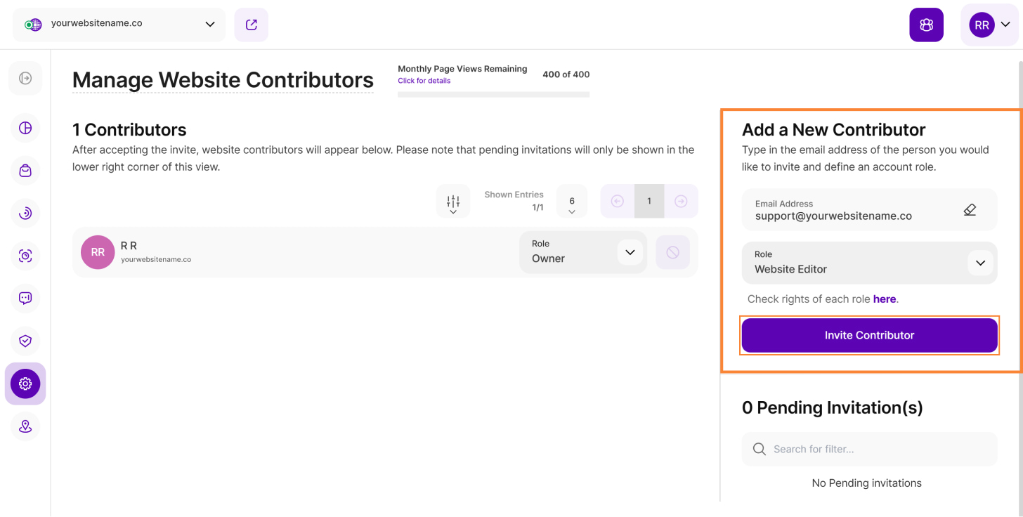 Note: Whitelisting your own domain adds an extra layer of security to your account as it will prevent other domains from using your tracking script!