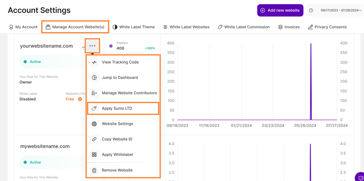 Note: In order to apply the deal to a different website, you will have to delete the current website where you have applied the AppSumo plan so you can have the option to apply that slot again to a different website. Unfortunately, it cannot be downgraded to FREE.