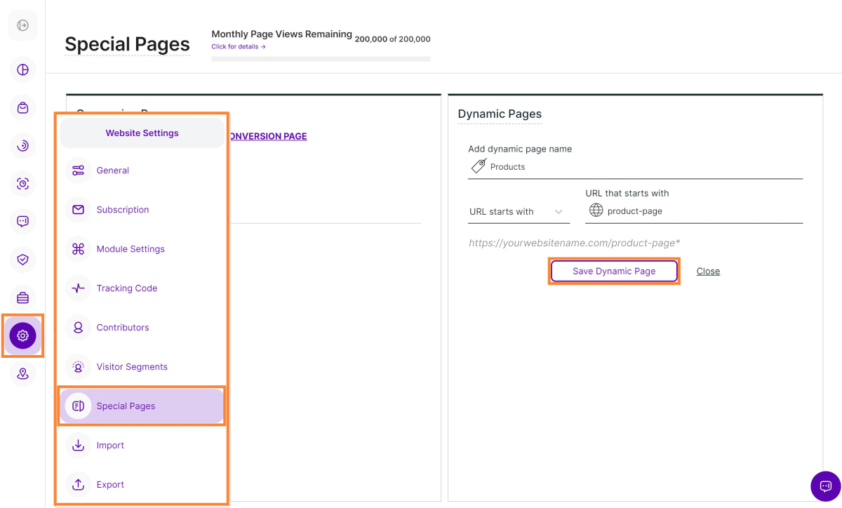 Important Hint: You can view the statistics of your self-defined dynamic pages in various locations such as the Pages Dashboard.