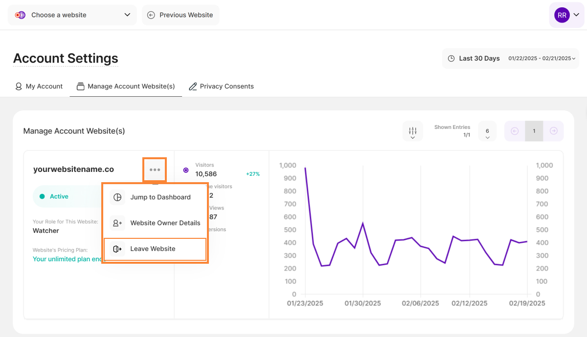 - Navigate to Account Settings and identify the website you wish to add the plan to.