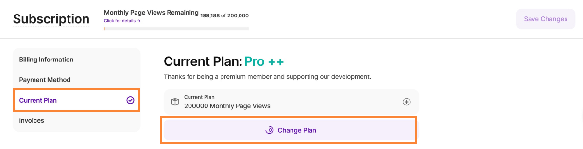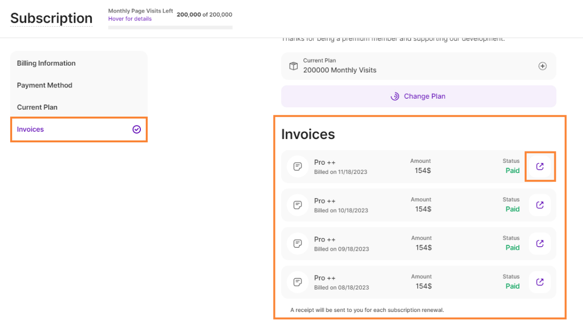 You may cancel the auto-renewal at any moment by heading to Website Settings > Subscription > Payment Method > Turn off auto-renewal.