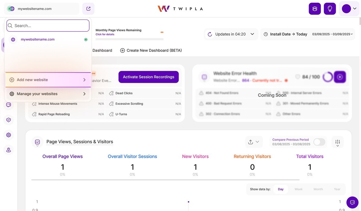 It only takes a few minutes to install TWIPLA on your own website. Once installed, you will be able to get a clear grasp of your website traffic!