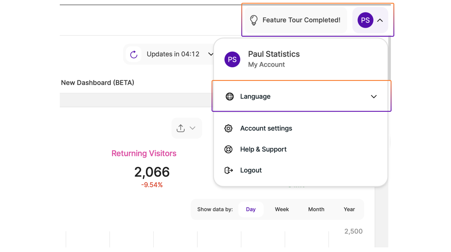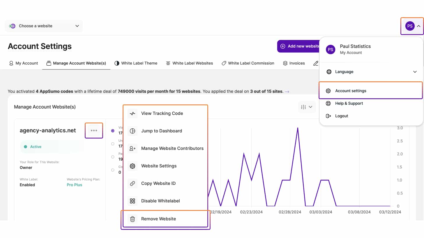 Note: You can add as many more websites as you want to the account once these onboarding steps are complete. Do this by clicking on your website's name in-platform at the very top left corner of your screen, selecting Add New Website, and following the instructions provided.