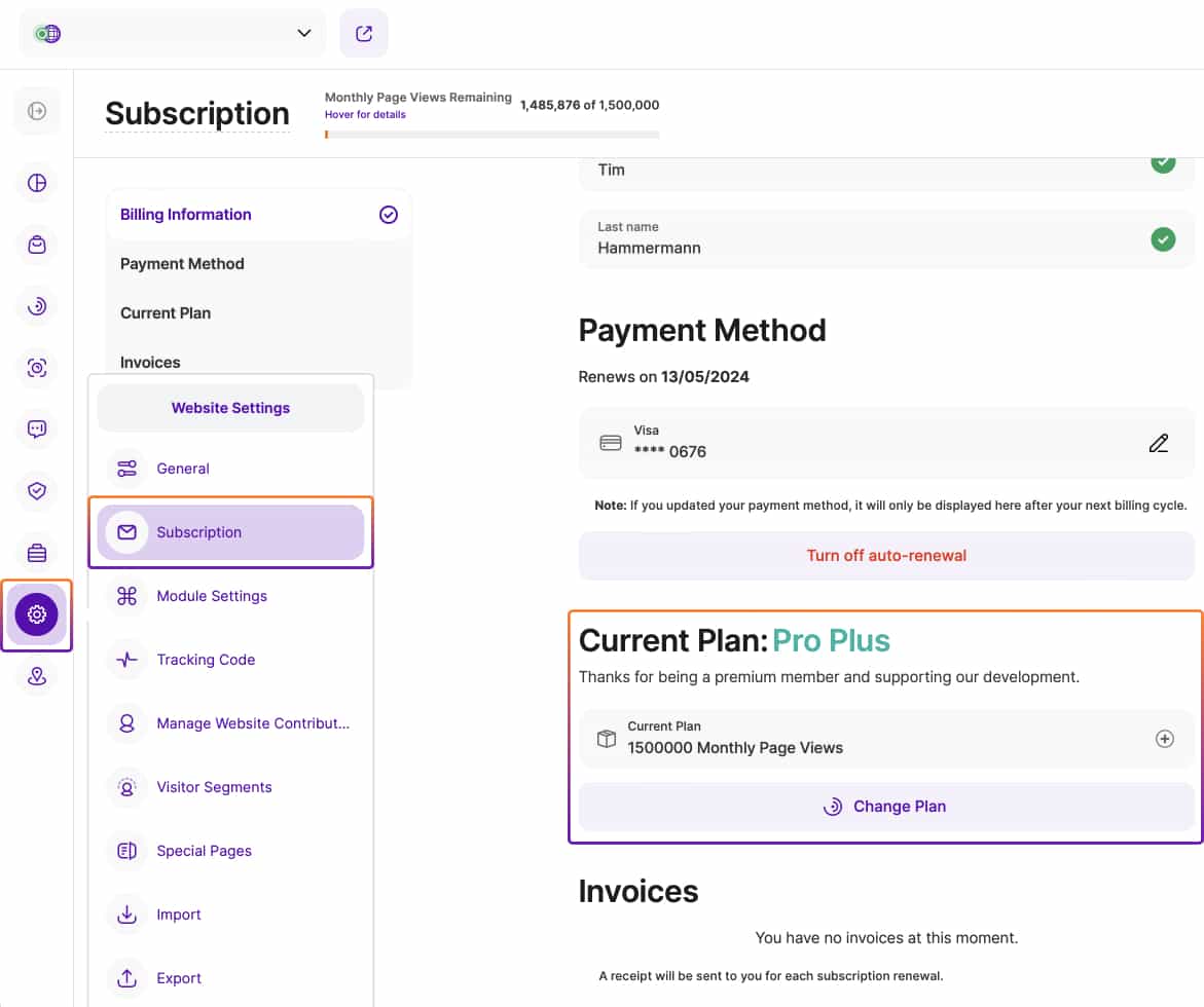 Hint: Once updated, the new plan will come into effect at the end of the current payment cycle. Only pay the subscription that matches your traffic volume, and use all tools to maximize the insight potency.