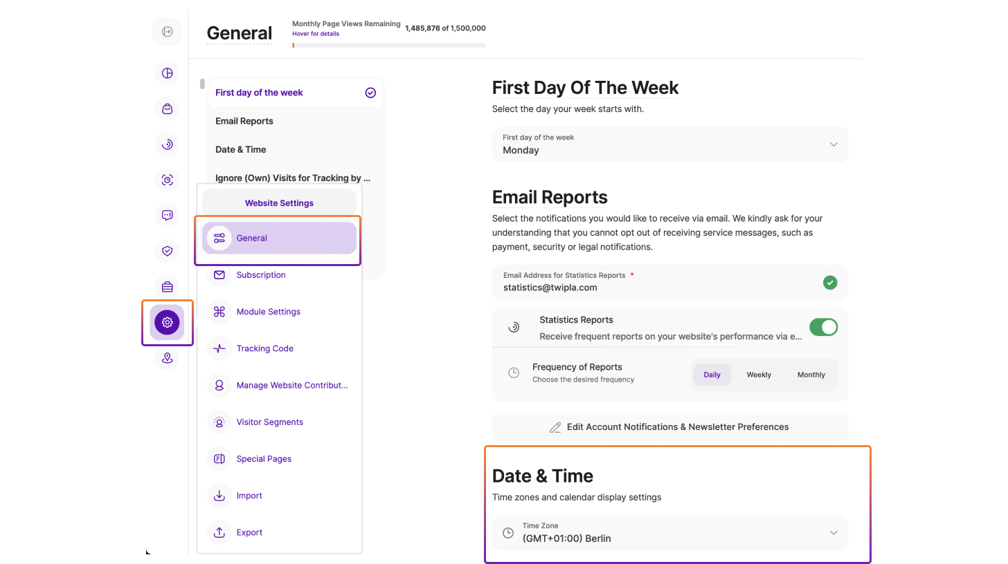 - Go to Website Settings in the vertical left-hand icon menu and click on General.